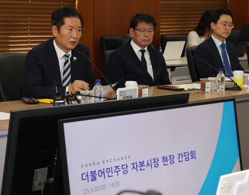 [파이낸셜뉴스] 정청래 더불어민주당 대표는 30일 서울 여의도 한국거래소를 방문해 거래소 관계자, 시장 전문가들과 '민주당 자본시장 현장 간담회'를 열고 "코리아 디스카운트 시대를 끝내고 코리아 프리미엄 시대를 열겠다"고 밝혔다. 이 자리에서 정 대표는 특히 부동산으로 흘러들어갔던 돈의 물줄기를 주식 시장으로 바꿔야 한다고 지적했다.