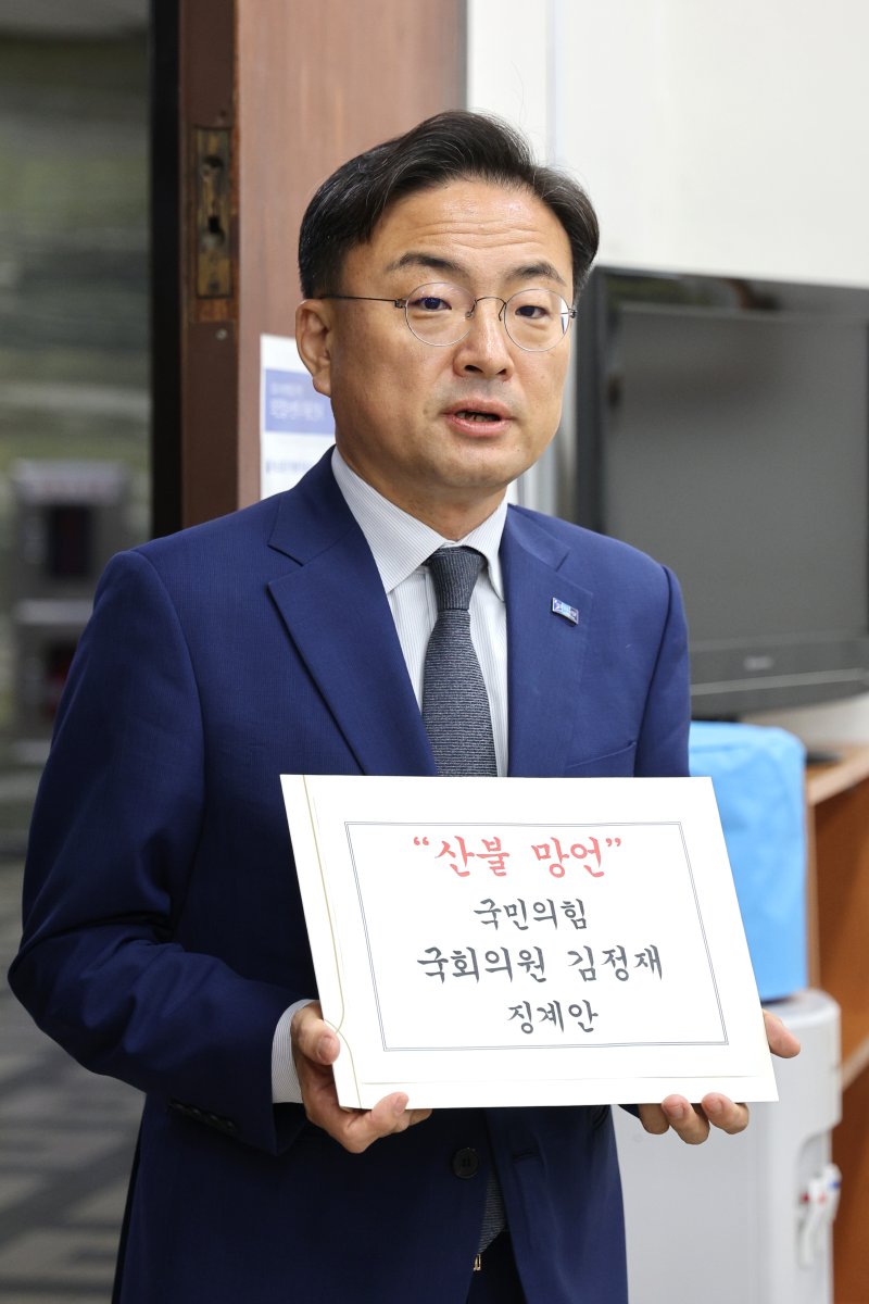 신 원내수석부대표는 징계안에서 "김 의원은 지난 25일 국회 본회의에서 '경북·경남·울산 초대형 산불 피해 구제 및 지원 특별법안'에 대한 표결 절차를 진행하는 도중 '호남에선 불 안 나나'라는 중대한 망언을 했다"며 "국가적 재난을 정쟁의 도구로 삼아 사회 통합에 어긋나는 지역 비하 발언을 함으로써 해당 지역 주민 모두에게 큰 상처를 남겼다"고 지적했다.
