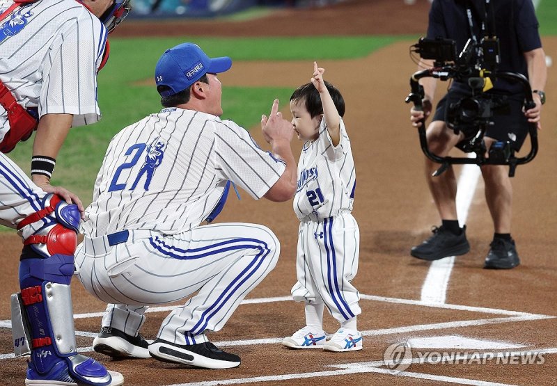 (대구=연합뉴스) 김경윤 기자 = '끝판 대장' 오승환(43)의 눈가는 은퇴 경기를 시작하기 전부터 눈물이 그렁그렁 맺혔다.