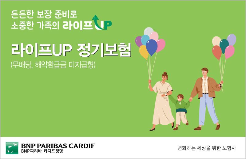 '라이프UP 정기보험'은 정기보험의 핵심인 사망보장에 집중한 상품이다. 가구의 소비지출이 집중되는 기간 든든한 보장을 제공한다는 것이 BNP파리바 카디프생명의 설명이다.