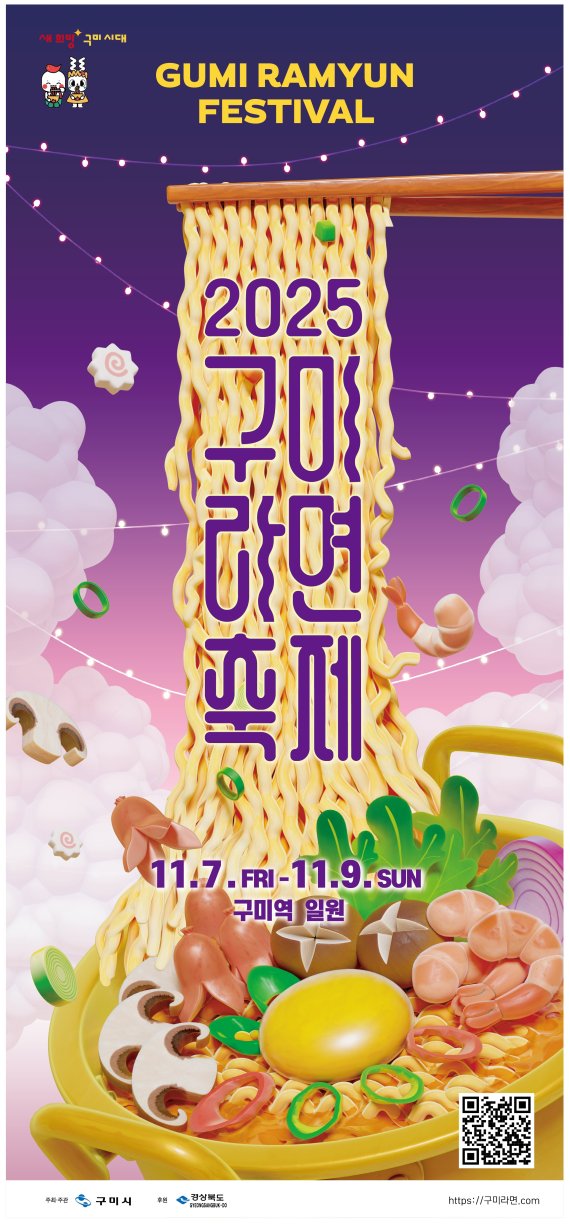 구미시는 오는 11월 7일부터 9일까지 구미역 일원에서 개최하는 '2025 구미라면축제'의 메인 프로그램과 라면 레스토랑 메뉴를 공식 홈페이지를 통해 공개했다고 1일 밝혔다.