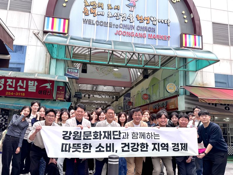 【파이낸셜뉴스 춘천=김기섭 기자】강원문화재단 임직원들이 1일 춘천중앙시장과 명동거리 일대 착한가격업소를 방문해 지역소비 촉진 행사를 진행했다.