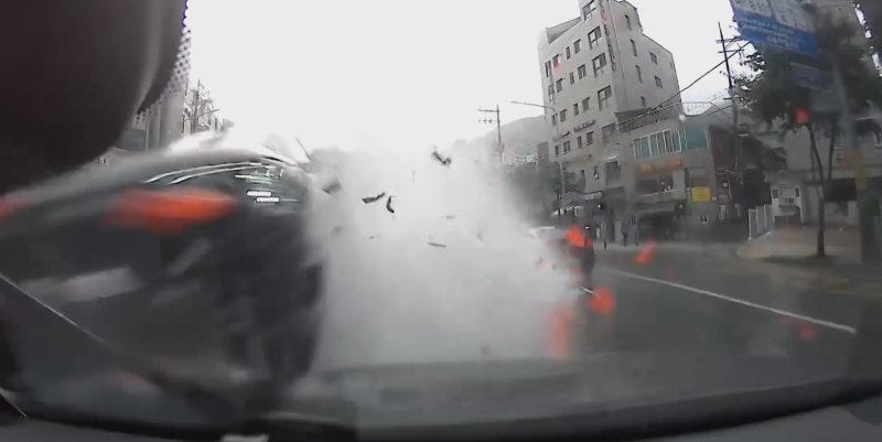 공개된 블랙박스 영상에는 고속으로 질주하던 차량이 방호벽을 들이받고, 정상적으로 주행 중이던 블박차를 향해 정면으로 돌진하는 아찔한 순간이 그대로 담겨 있다.