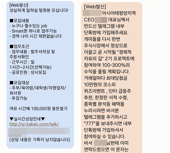 특히 이동통신 3사와 카카오 등은 추석연휴와 민생회복 쿠폰 지급 등 민생과 관련한 불법스팸 발생에 대한 주의안내 및 차단을 더욱 강화해 이용자가 피해를 입지 않도록 힘쓰겠다고 전했다.