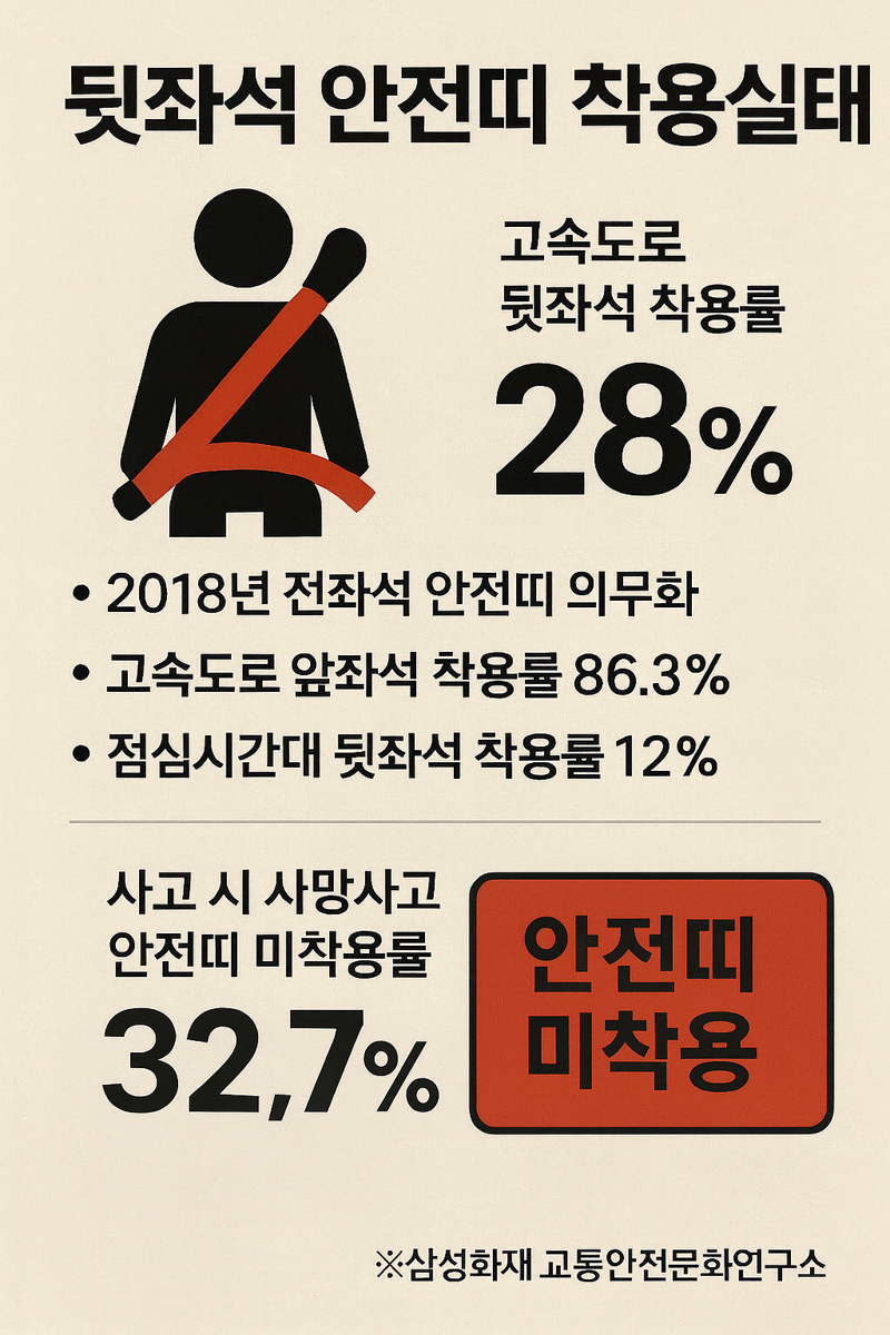 삼성화재 "뒷좌석 안전띠 착용률 제고를 위한 안전의식 개선 시급"