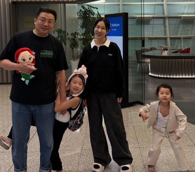 공개된 사진에는 이지혜가 남편, 두 딸과 함께 출국하기 위해 비행기로 이동하고 있는 모습이 담겼다.