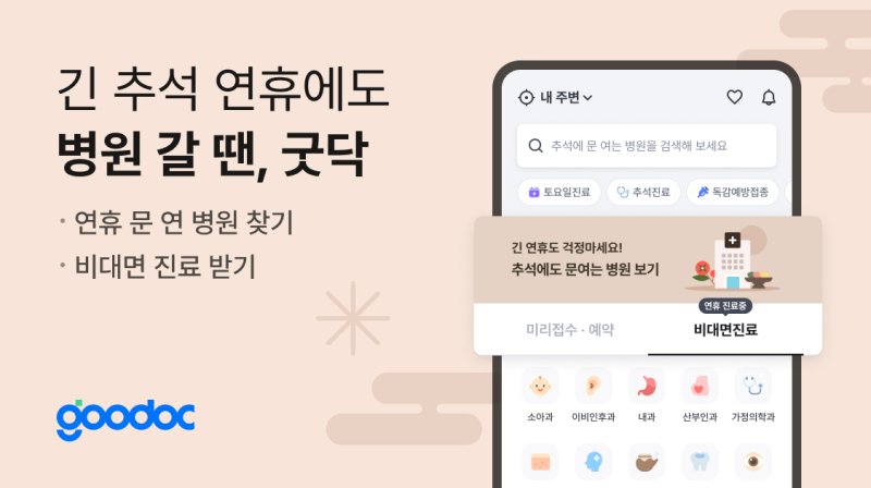 굿닥, 앱 내에 '추석 진료 병원' 메뉴 개설' 제공