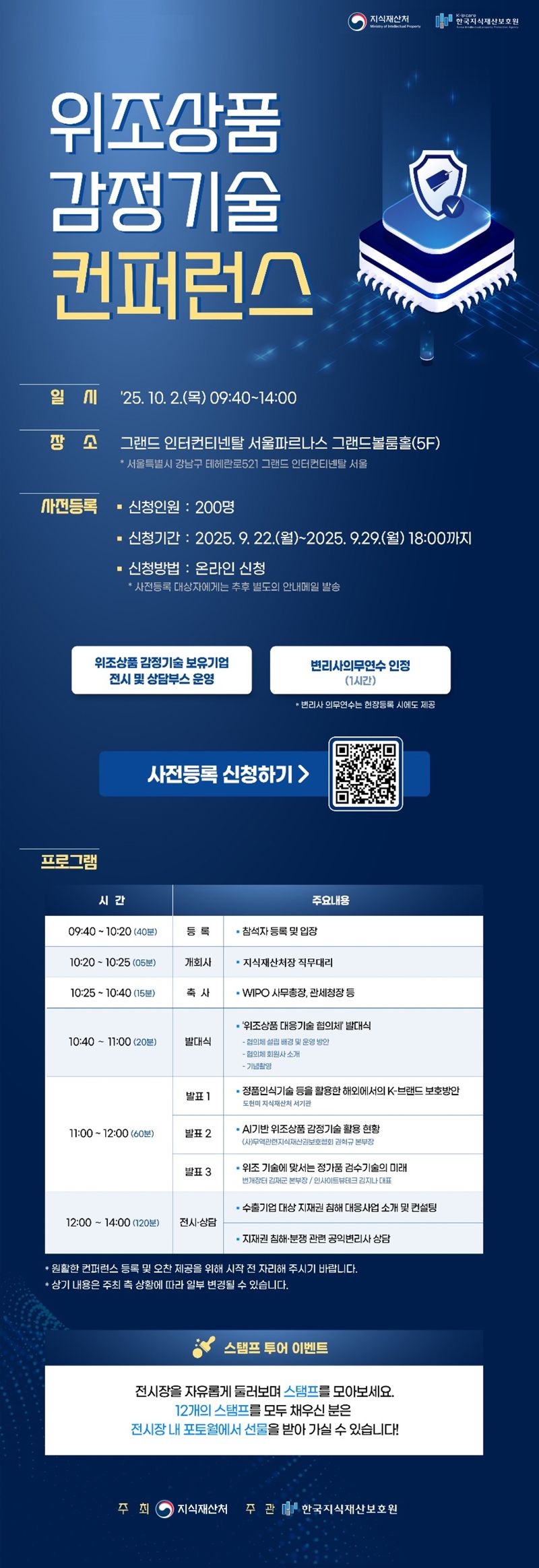 컨퍼런스는 위조상품 대응 기술 전시 및 시연회, 위조상품 유통 방지를 위한 민·관 대응 전략 공유 세미나, 지식재산권 침해 대응 사업 소개 및 상담을 위한 박람회 등 총 3개의 세션으로 진행됐다.