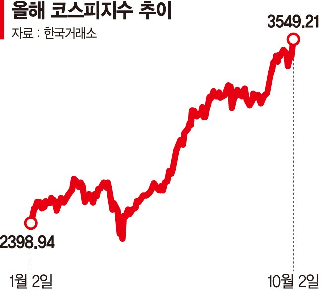 2일 한국거래소에 따르면 이날 코스피는 전 거래일보다 2.02% 오른 3525.48에 출발한 뒤 장중 한때 3565.96(3.19%)까지 터치하며 강세 흐름을 이어가고 있다.