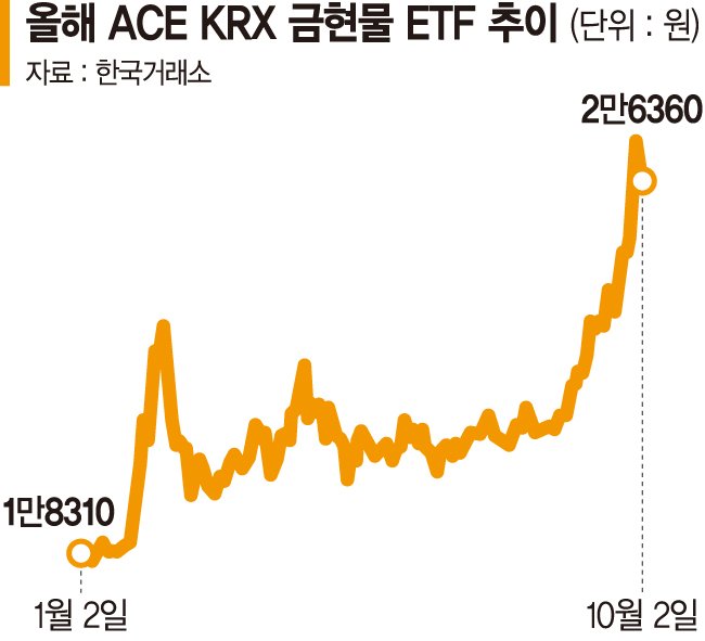 동일한 지수를 추종하는 'TIGER KRX금현물'도 같은 기간 25.18% 올랐다. 두 상품 모두 'KRX 금현물지수'를 따른다.