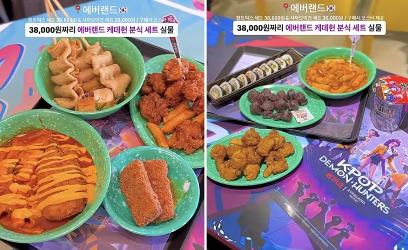 지난 1일 테마파크 인플루언서 '재구언'은 자신의 유튜브 채널과 인스타그램에 "3만 8000원짜리 분식 세트를 파는 에버랜드의 케데헌 음식 실물"이라는 글과 함께 영상을 올렸다.