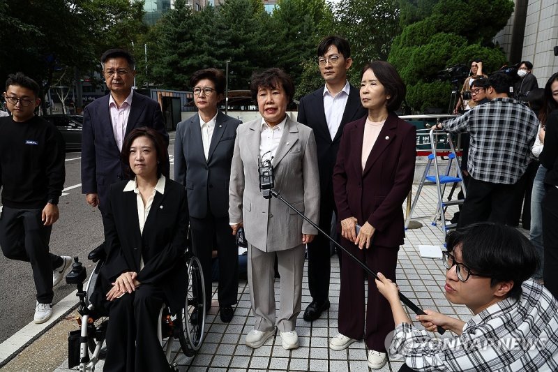 배현진·박수민·강선영·김장겸·박충권·조배숙·최보윤·최수진 의원은 이날 오후 이 전 위원장의 체포적부심 시작 직전에 남부지법 앞에서 기자회견을 하고 "이 전 위원장에 대한 경찰 체포는 불법·부당하다"면서 이같이 밝혔다.