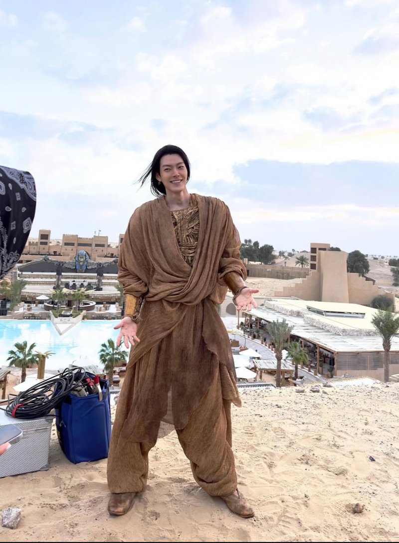 김우빈은 4일 자신의 인스타그램에 "기이이이이인 머리 지니"라는 글과 함께 여러 장의 사진을 게재했다.공개된 사진 속 김우빈은 사막을 배경으로 브라운빛 의상을 입고 미소를 짓고 있다. 긴 머리와 고풍스러운 의상이 어우러지며 독특하고 신비로운 분위기를 자아냈다.