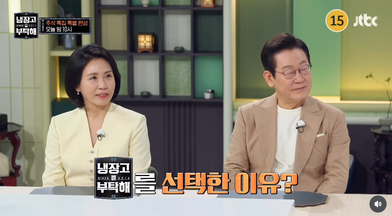 [파이낸셜뉴스] 이재명 대통령과 김혜경 여사가 JTBC '냉장고를 부탁해' 추석특집편에 출연한 걸 두고 정치권 논란이 계속되고 있는 가운데 6일 밤 10시에 공개된다.