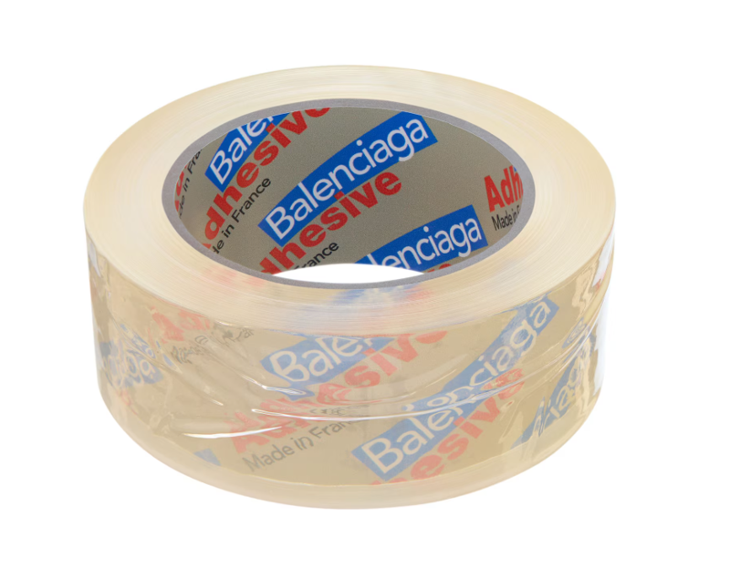 프랑스에서 제조된 이 팔찌는 박스 테이프 디자인으로 내부 및 외부 스티커에 'Balenciaga Adhesive(발렌시아가 어드허시브)' 로고가 프린트돼 있는 게 특징이다.