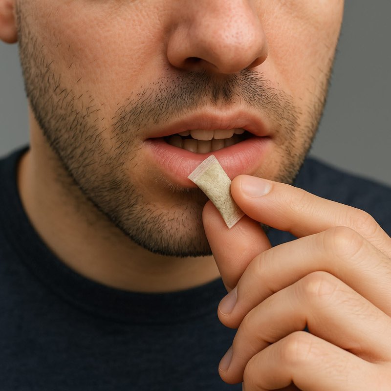 잇몸과 입술 사이에 파우치를 붙이는 방식으로 니코틴 흡수를 돕는다.