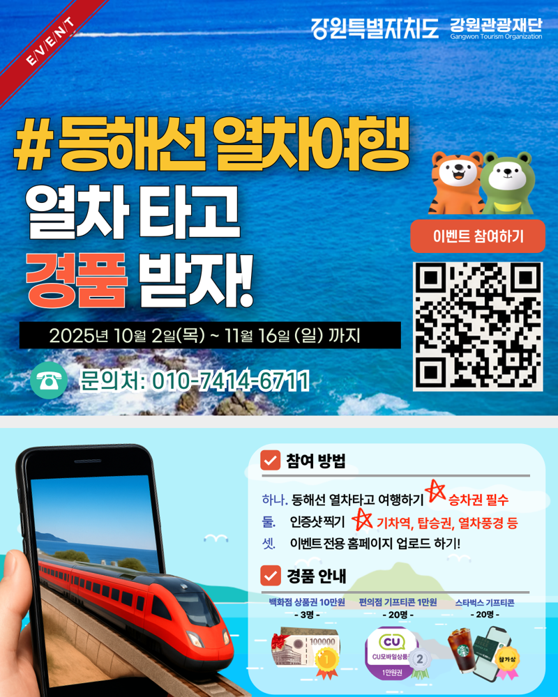 강원도, 11월16일까지 동해선 인증 이벤트 진행