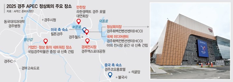 APEC 정상들의 만찬장소도 큰 관심사다. 윤석열 정부는 당초 국립경주박물관 내 만찬장을 신축해왔다. 하지만 안전과 인원 수용 문제로 인해 라한셀렉트 호텔로 만찬장이 APEC 개막 한 달여를 앞두고 급하게 변경됐다. 경주국립박물관 내 신축해왔던 만찬장 공사비와 부대시설 조성비는 최대 80억원에 달하는 것으로 알려졌다.