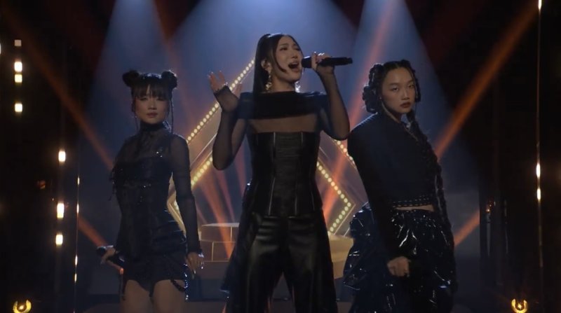 헌트릭스 루미·미라·조이의 실제 가창을 맡은 이재·오드리 누나·레이 아미는 7일(현지시간) 방송된 미국 NBC 인기 토크쇼 '더 투나잇 쇼 스타링 지미 팰런'(The Tonight Show Starring Jimmy Fallon·지미 팰런 쇼)에서 '골든'을 처음 완창했다.