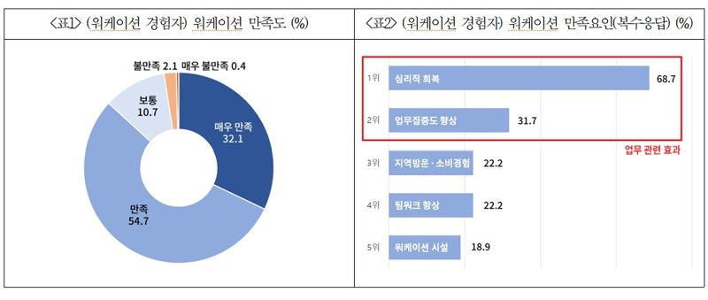 워케이션 활성화를 위해서는 기업의 유연·비대면 근무 확대 및 제도적 뒷받침(67.4%)이 가장 필요한 것으로 조사됐고, 이어 워케이션 인프라 개선 및 지역연계 프로그램 개선(43.7%), 정부·지자체의 비용지원 프로그램(37.5%) 등이 과제로 제시됐다.