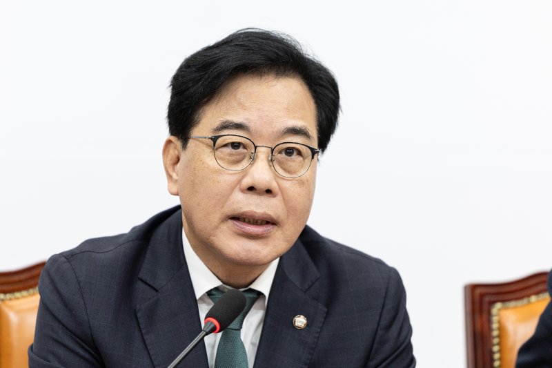 (서울=뉴스1) 박소은 기자 = 송언석 국민의힘 원내대표는 9일 정청래 더불어민주당 대표가 추석 연휴 동안 내란 척결과 검찰청 폐지 등 개혁 속도전을 주문하는 민심을 청취했다고 밝힌 것에 대해 "추석 민심을 빙자해서 본인의 비뚤어진 정치의식을 나타낸 것 아닌가"라고 비판했다.