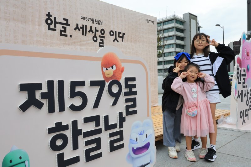 한편 이날 오전 광화문 광장에서는 외국인 80여 명을 포함한 작가 400여 명이 '한글, 세상을 열다'라는 주제로 열린 휘호 대회에 출전해 하늘색 두루마기 차림으로 저마다의 필체를 뽐냈다.