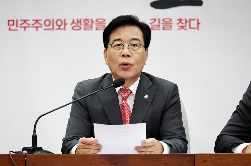 송 원내대표는 "이번 국감의 기조는 독재를 저지해 내 삶을 지키는 국감"이라며 "이재명 정부의 무능과 독선으로부터 먹고살기 위해 땀흘리며 노력하는 국민의 꿈과 땀의 가치, 삶의 터전을 지키기 위한 국감이 될 것"이라고 강조했다.