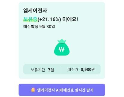 또한 개별 종목에서 나의 보유 매수가를 입력하면, 나만의 매도신호도 개별적으로 받을 수 있다.