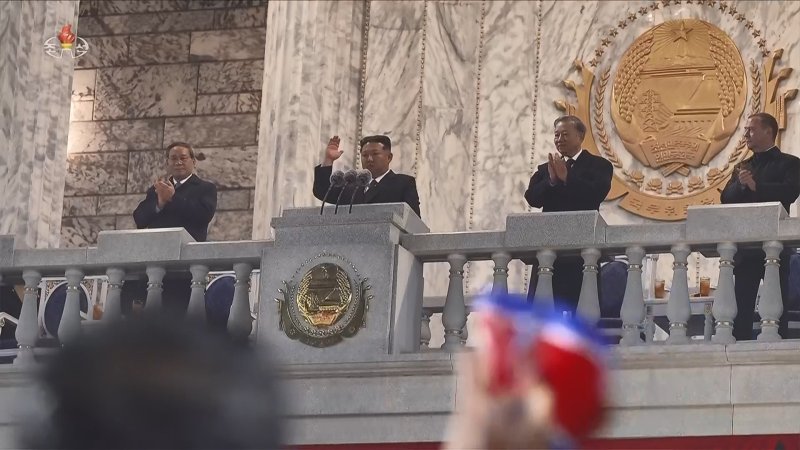 이날 주석단에서 열병식을 사열한 북한 김정은 위원장의 양옆으로는 리창 중국 국무원 총리, 베트남 최고지도자인 또 럼 베트남공산당 서기장이 섰다. 드미트리 메드베데프 러시아 국가안보회의 부의장 겸 통합러시아당 의장은 럼 서기장 왼쪽에 자리했다. 김 위원장의 딸 주애는 북한 매체에서 언급되지 않았고 보도 사진에서도 보이지 않아 참석하지 않은 것으로 보인다.
