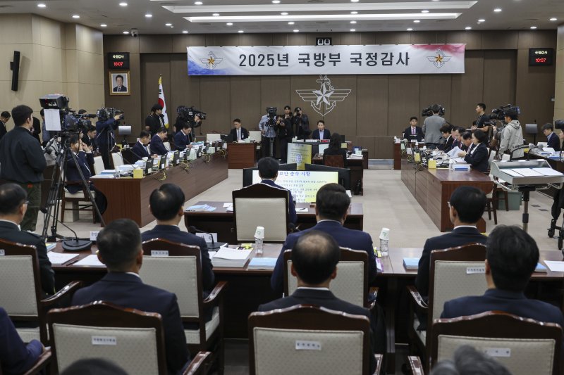 (서울=뉴스1) 김정률 기자 = 국방부 등을 대상으로 13일 열린 국회 국방위원회 국정감사에서 여야는 '내란'이란 단어를 두고 설전을 벌였다.
