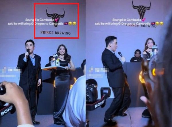 승리가 서 있던 무대의 뒤에 '프린스 브루잉(Prince Brewing)'이라는 문구와 로고가 적혀 있는데, 이는 최근 외신을 통해 캄보디아의 범죄 단지인 '태자단지'를 운영하는 주최로 알려진 '프린스 홀딩스(Prince Holdings)'로고와 유사하다.