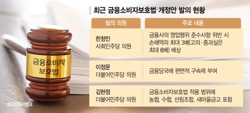 김현정 더불어민주당 의원은 지난 8월 신의성실의무, 설명의무 등과 청약의 철회, 위법계약 등을 규정한 금소법의 범위를 기존 신용협동조합에 더해 농업협동조합, 수산업협동조합, 산림조합 및 새마을금고까지 포함시키는 개정안을 내놨다.