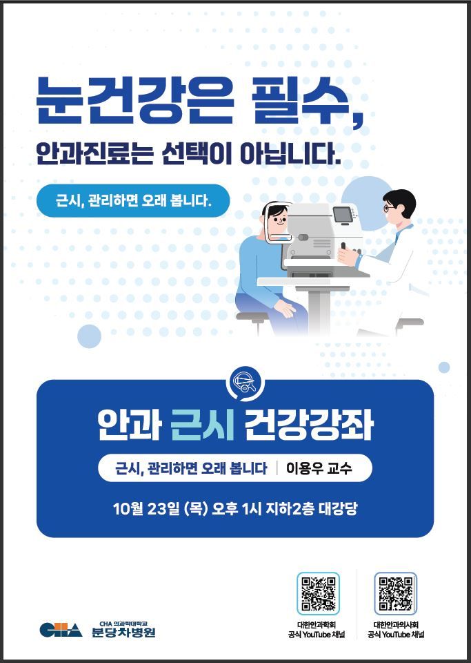 한편 이번 건강강좌는 근시에 관심 있는 환자 및 가족, 일반인이라면 누구나 무료로 참석이 가능하다.