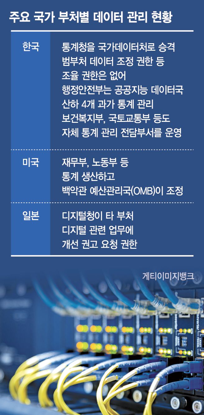 부처별로 국가 통계를 관리하다 보니 국가 통계의 연계·활용은 데이터 주도권을 놓지 않으려는 부처 간 견제, 협조 부족 등으로 사실상 통계청이 컨트롤할 수 없었기 때문이다. 데이터처에 부처 간 통계·데이터 관련 업무를 조율하고 효율성을 높일 수 있는 실질적인 권한을 보장해야 한다는 목소리가 나오는 것도 이런 배경에서다.