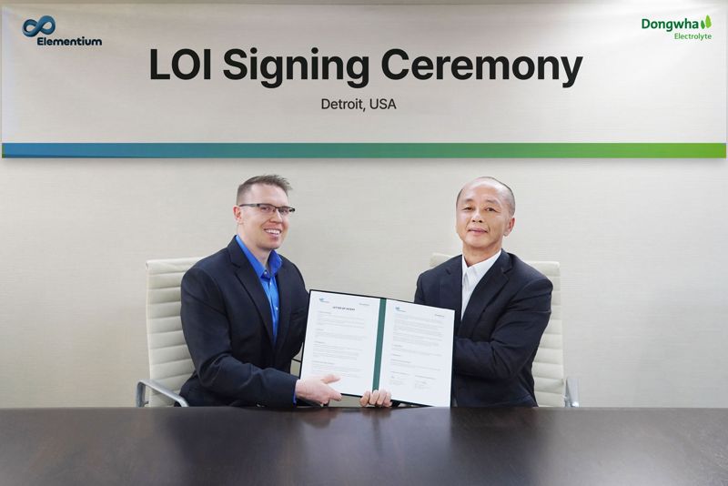 [파이낸셜뉴스] 동화기업 계열사 동화일렉트로라이트가 미국 전해액 기업 엘레멘티움 머티리얼즈와 전해액 글로벌 시장 점유율 확대를 위한 전략적 업무 협력 의향서(LOI)를 체결했다고 15일 밝혔다.