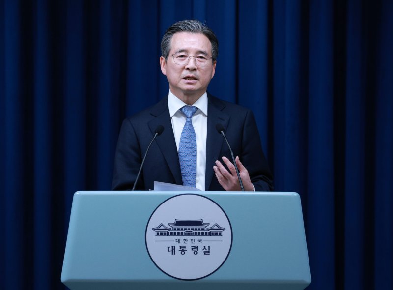 [서울=뉴시스] 고범준 기자 = 김용범 정책실장이 1일 서울 용산 대통령실 청사에서 샘 알트만 오픈AI CEO 접견 관련 브리핑을 하고 있다. 오른쪽은 하정우 AI미래기획수석. 2025.10.01. bjko@newsis.com /사진=뉴시스