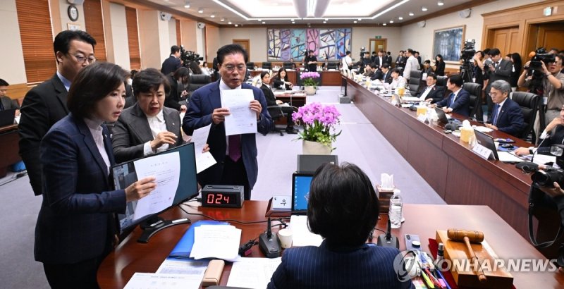 국감장에 남은 국민의힘 의원들은 현장에서 대책 회의를 열어 대응 방안을 고심 중이다. 일부 의원들은 오후 국감을 '보이콧'하겠다는 등 강경한 태도를 보이고 있다.