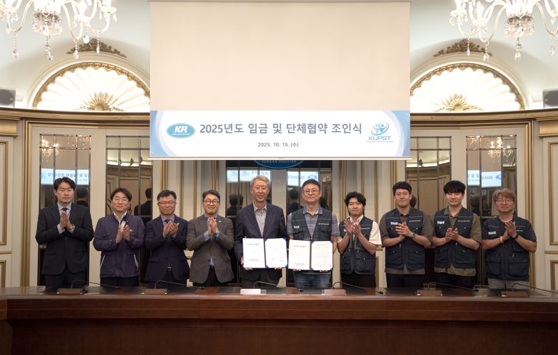 한국선급(KR)은 15일 공공과학기술연구노동조합과 2025년도 임금 및 단체협약 조인식을 가졌다고 밝혔다.