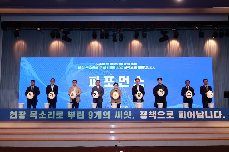 한성숙 중기부 장관은 "소상공인 폐업 100만명이라는 심각한 상황을 보고 시작했던 간담회였는데 9차례의 간담회를 통해 소상공인과 전문가 말씀을 듣고, 정책을 개선해왔다"며 "지금까지 주신 의견을 최대한 정책에 반영할 수 있도록 끝까지 챙기겠다"고 말했다.