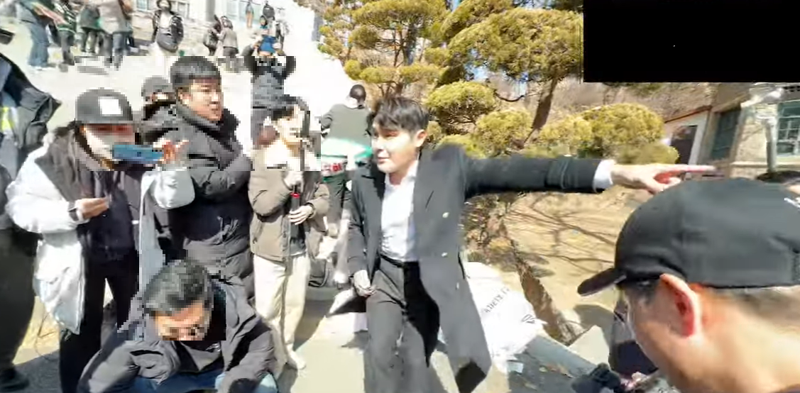 학생이 들고 있던 피켓 찢고 침 뱉어