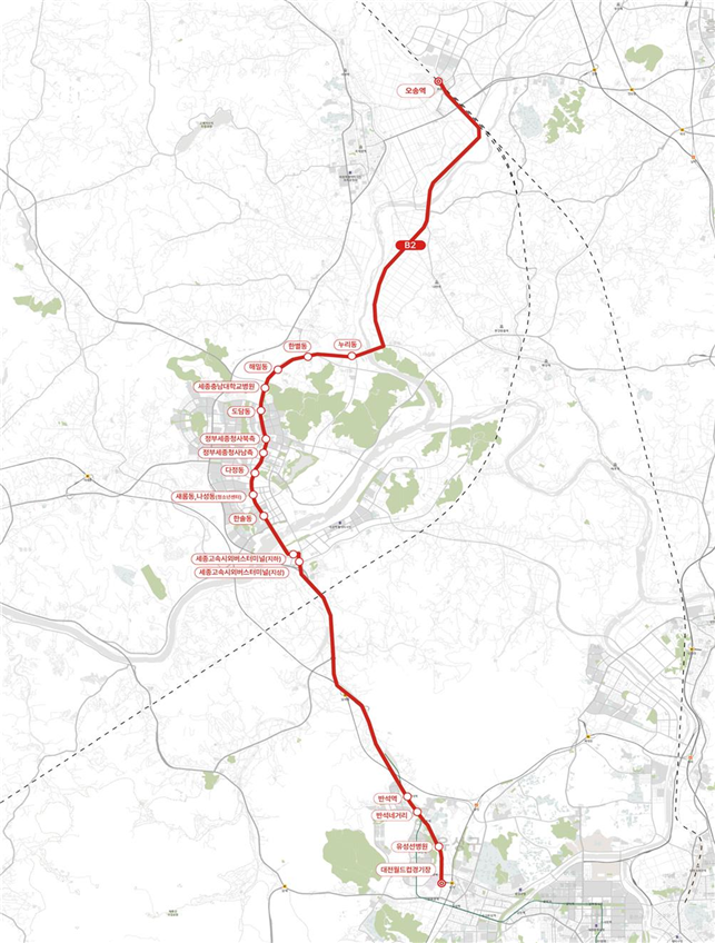 [파이낸셜뉴스] 행복청, 세종시, 대전시 3개 기관은 오는 24일부터 B2노선을 반석역에서 대전월드컵경기장까지 연장 운행한다고 15일 밝혔다.