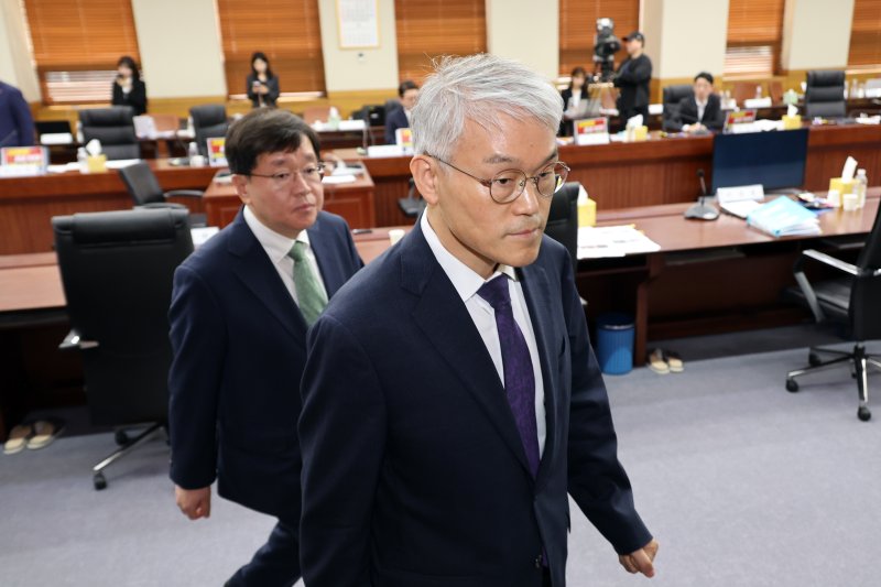 법원행정처도 난감한 기색이 역력했다. 천 처장은 민주당 의원들의 이석에도 자리에 남아 통화를 하는 등 돌발행동에 당황한 기색을 감추지 못했다. 이후 천 처장은 5분 뒤 국감장을 떠나 승강기를 타고 이동, 6층 처장실에서 추 위원장과 민주당 간사인 김용민 위원 등과 함께 1시간가량 면담한 것으로 확인됐다.