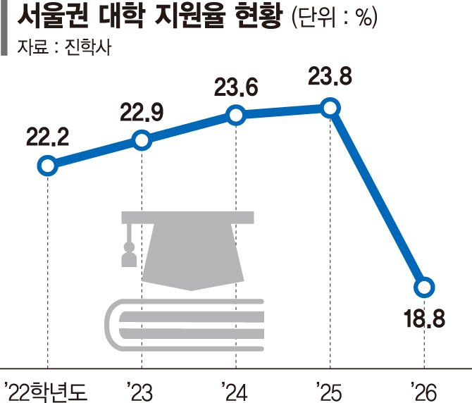 가장 주목되는 변화는 서울 소재 대학 지원 비율의 급감이다.