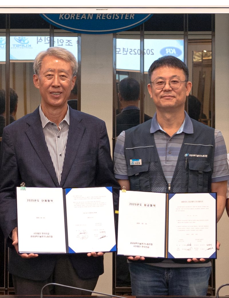 한국선급(KR)은 15일 공공과학기술연구노동조합과 2025년도 임금 및 단체협약 조인식을 가졌다고 밝혔다.
