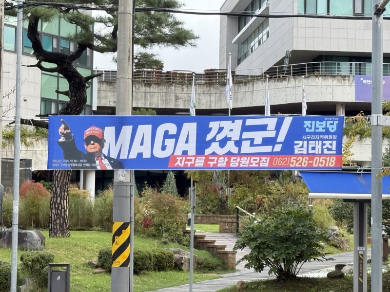 광주시당은 트럼프의 마가(MAGA)에 당당하게 맞서야 한다는 점을 강조하며 '퇴마 선언! 마가 낀 대한민국을 구하라'는 슬로건으로 캠페인에 나섰다.