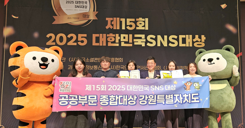 【파이낸셜뉴스 춘천=김기섭 기자】강원자치도가 ‘2025 대한민국 SNS 대상’에서 공공부문 종합대상을 수상하는 영예를 안았다.