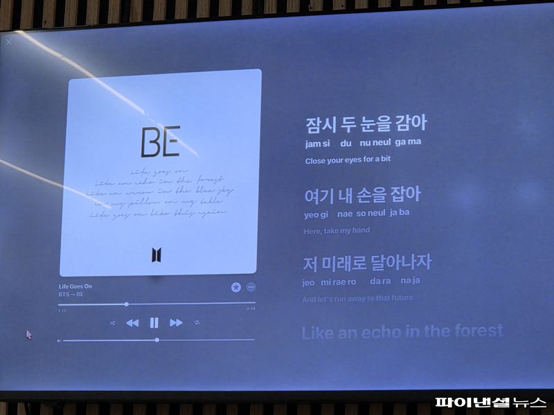 [파이낸셜뉴스] 애플은 16일 서울에서 미디어 브리핑을 열고 IOS 26 업데이트로 추가된 애플뮤직 신기능을 선보였다. 이날 공개된 신기능은 인공지능(AI)을 활용한 오토믹스, 원곡 느낌을 살린 가사 번역, 가수와 함께 부르기(Sing) 서비스 등이다.