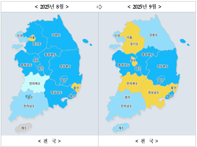 17일 국토연구원이 발표한 9월 부동산시장 소비심리조사에 따르면, 전국 주택매매 소비심리지수는 117.5로 전월(111.4) 대비 6.1p 오르며 6월(124.3) 이후 3개월 만에 상승국면으로 전환됐다. 수도권은 121.7로 7.0p, 서울은 133.4로 10.7p 상승했고, 비수도권은 112.0으로 4.7p 올랐다.