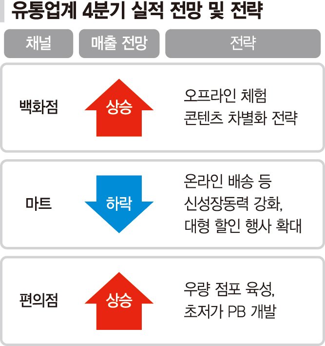 증권가에서는 올해 3·4 분기 편의점 매출은 전년 대비 약 4%, 백화점 기존점은 4~6%의 증가를 예상하고 있다.