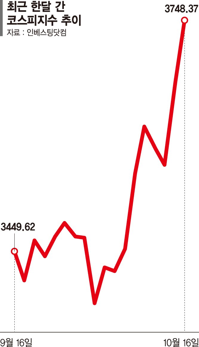 이날 코스피는 전 거래일 대비 91.09p(2.49%) 급등한 3748.37로 장을 마감했다. 지수는 0.51% 오른 3675.82로 출발해 전날 기록한 장중 사상 최고치(3,659.91)를 곧바로 갈아치운 뒤 꾸준히 상승세를 이어갔다.